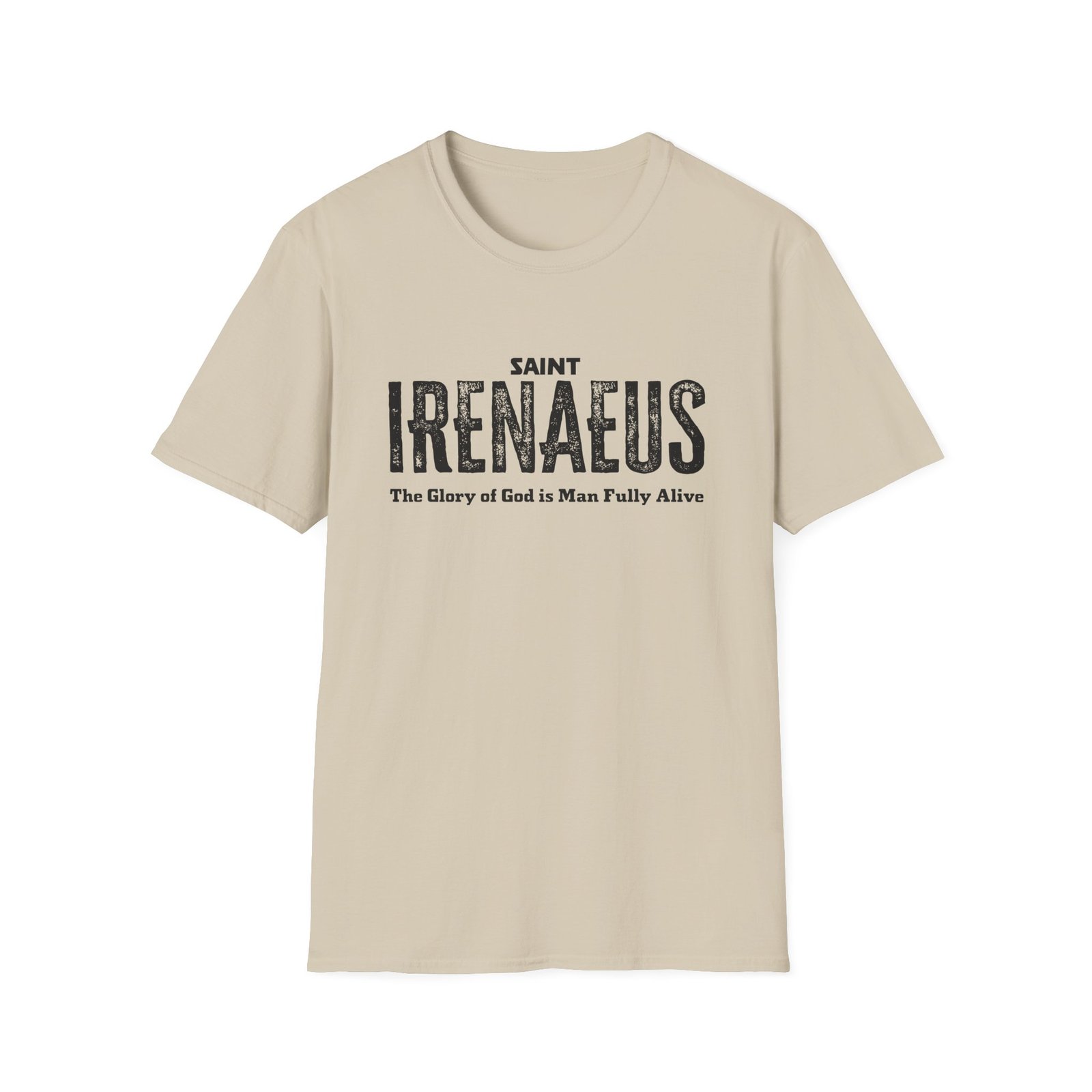 Be the first to review “Saint Irenaeus Distressed Font T-Shirt”